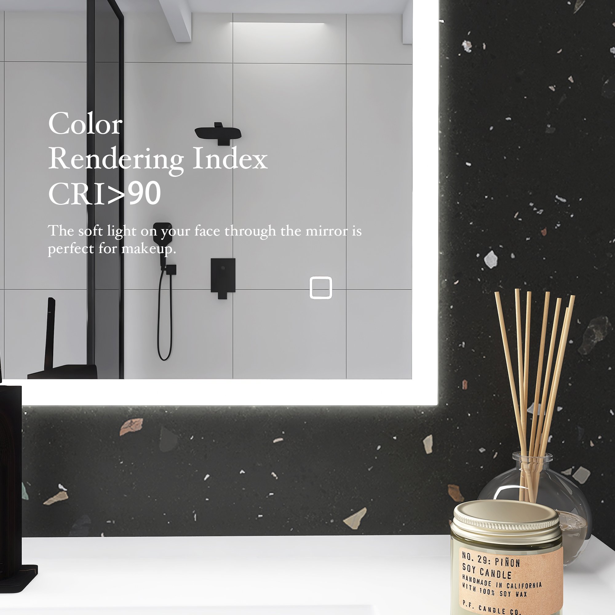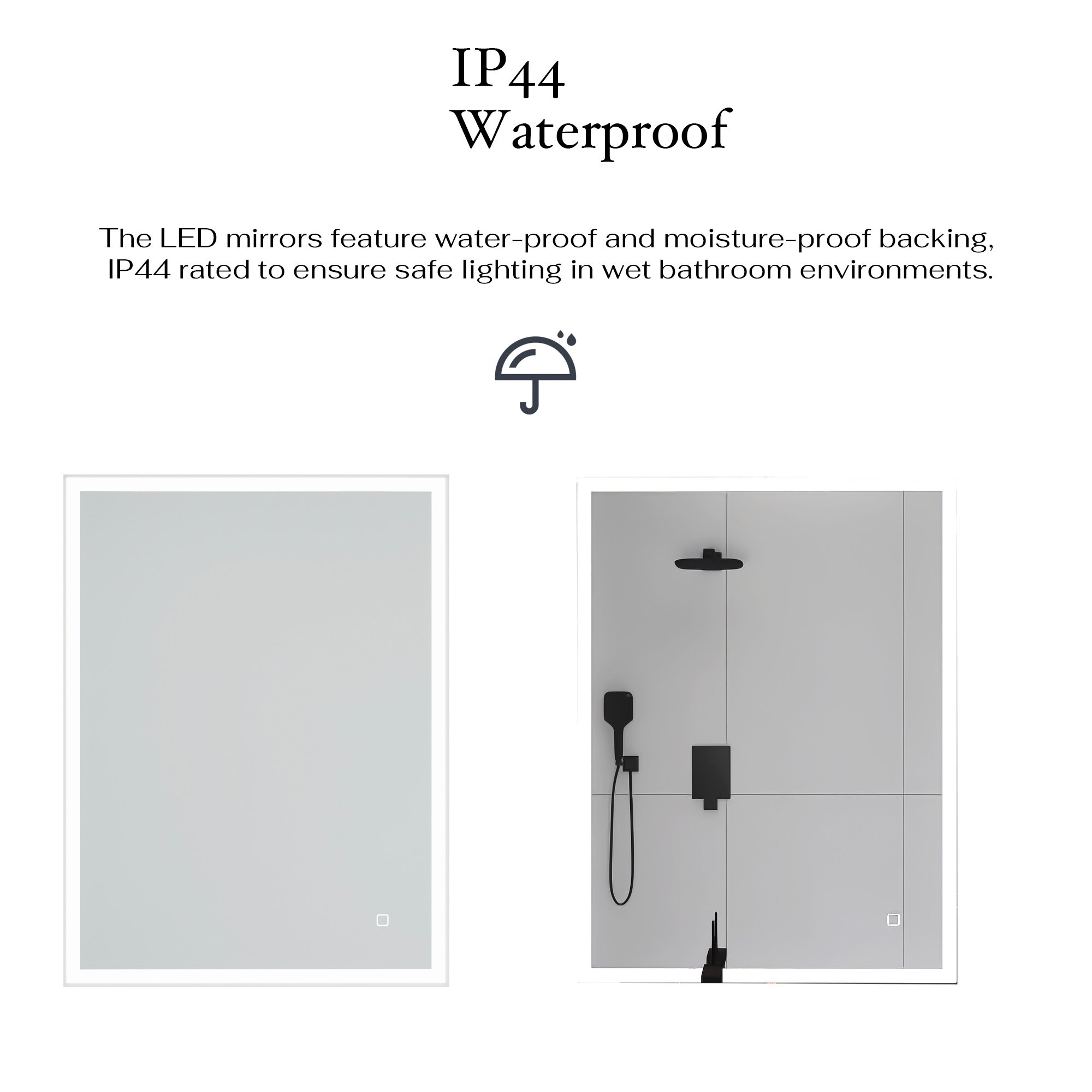 1.[Water-Proof] The LED mirrors feature water-proof and moisture-proof backing, IP44 rated to ensure safe lighting in wet bathroom environments.