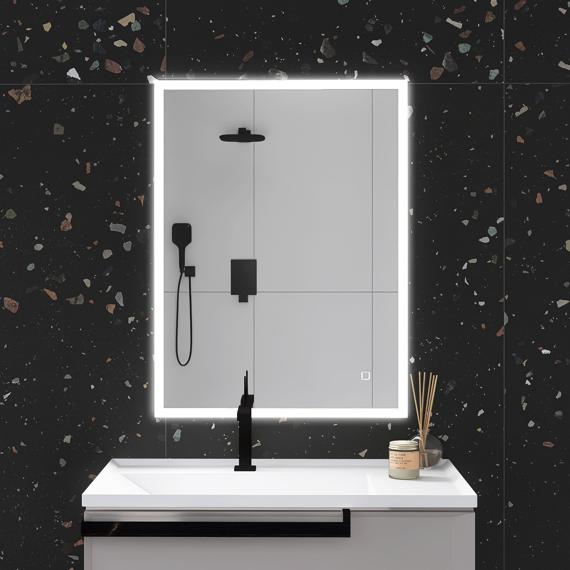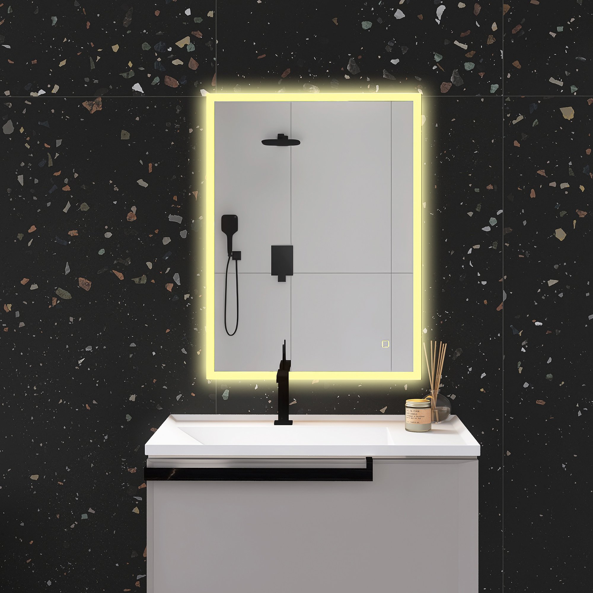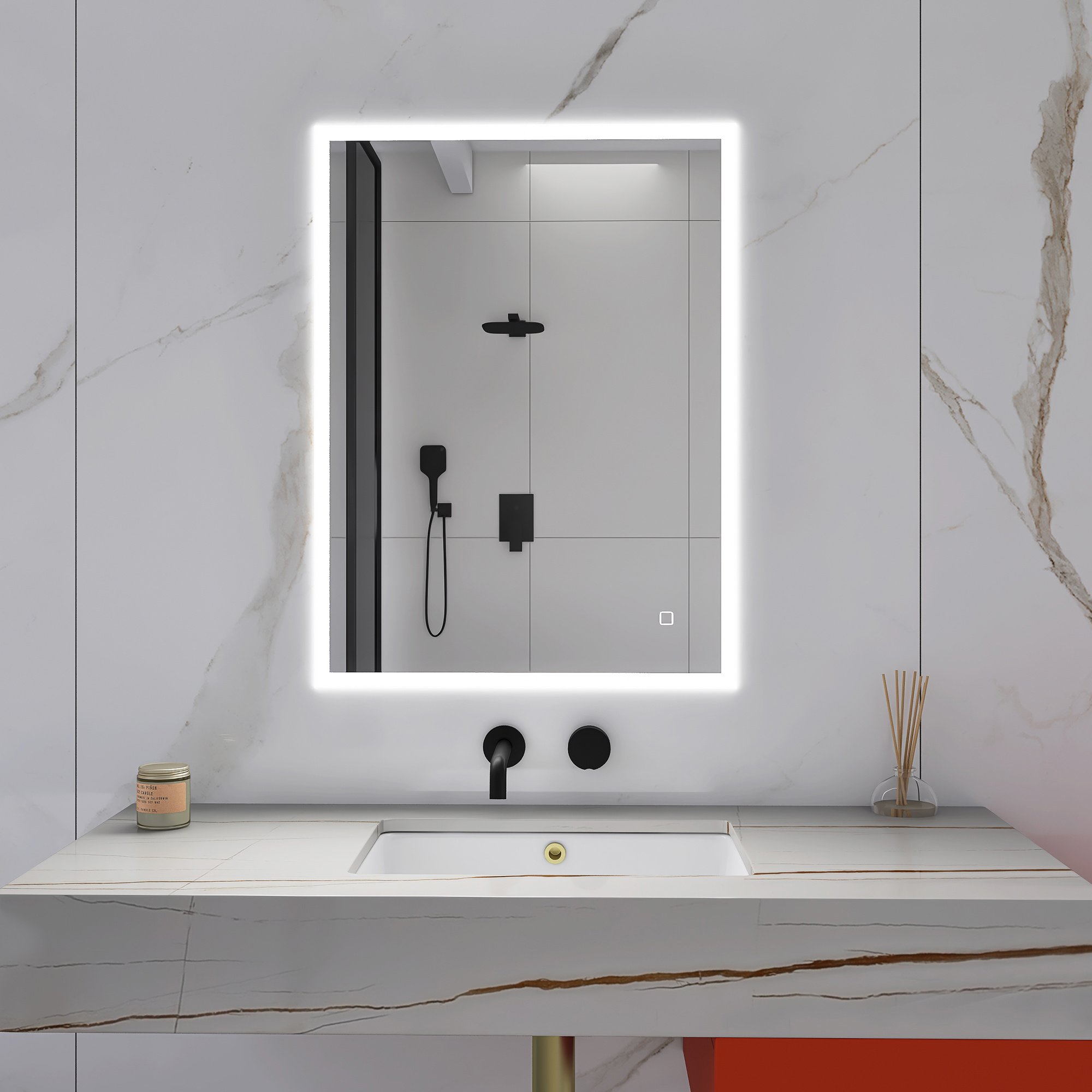 It's a good choice for your bathroom decoration and home improvement. This mirror was designed for the bathroom. The size and material were the best fit for bathroom use. The design matches the bathroom vanity which fits your bathroom decoration. This rectangular frameless bathroom vanity mirror with pretty led lighting builds a warm and cozy atmosphere. The soft light on your face through the mirror is perfect for makeup. The LED mirrors feature water-proof and moisture-proof backing; IP44 rated to ensure safe lighting in wet bathroom environments. Easy to use using the touch sensor with a transparent logo.Easy&Safety Installation]; The mirror is easily hanging on the wall and safely tested.