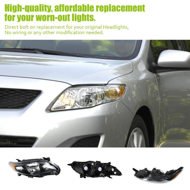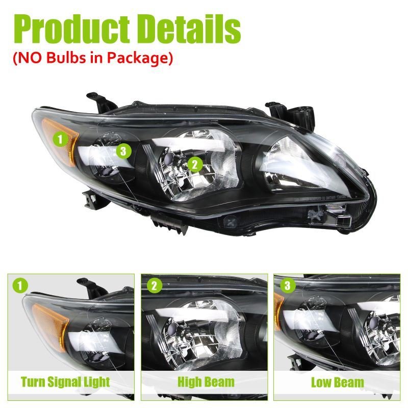 Car Headlight Assembly for 11-13 Toyota Corolla, Clear Lens, 1 Pair Headlamps