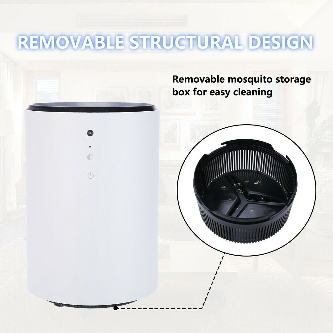 2.INTELLIGENT MOSQUITO TRAP: The Pests are attracted to LED lights of the bug zapper, and inhaled quickly into the storage tray by the airflow, then ferocious mosquitoes will be dried and dehydrated to death