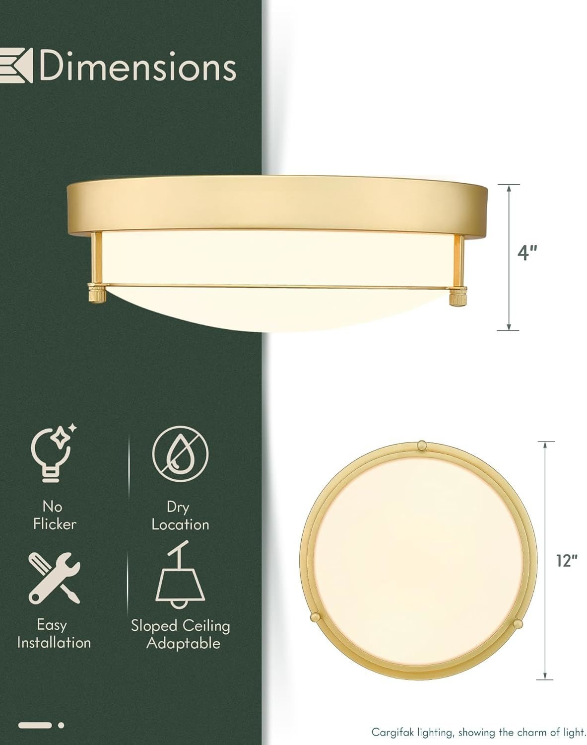 MODERN DESIGN: This light fixtures ceiling mount is made of high-quality metal frame and frosted glass, which is durable and non-glare. Simple shape and brass gold finish design, can perfectly match any decoration. The semi flush mount ceiling light not only provides you with lighting, but also enhances your sense of life atmosphere.