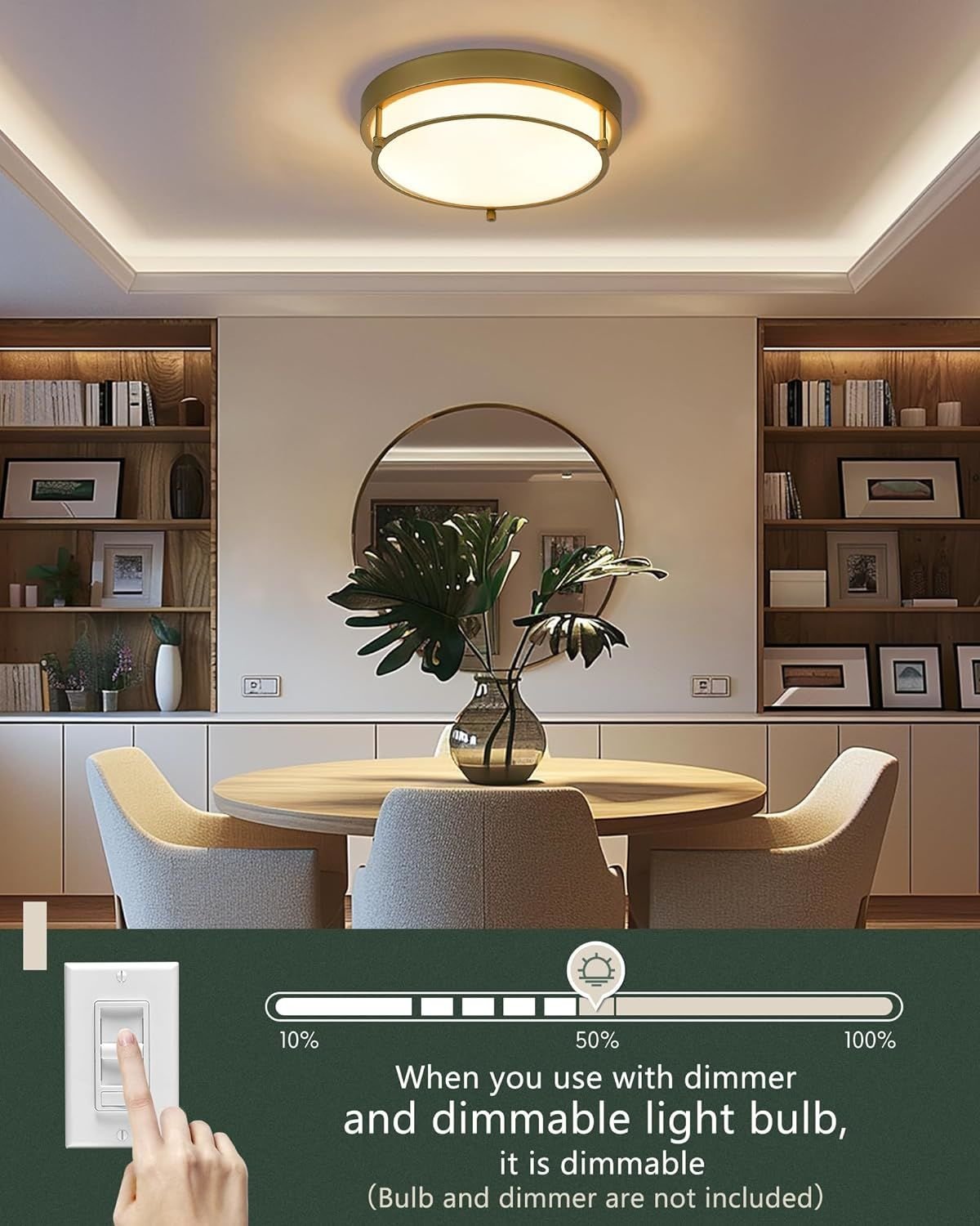 BULB REQUIREMENTS: The bedroom lights for ceiling has two built-in E26 medium bulb bases, which support any LED/CFL/Edison bulbs with E26 bases, (Max 60W). When you use dimmer and dimmable bulb, the kitchen light fixtures ceiling can be dimmable. (Dimmers and bulbs are not included).