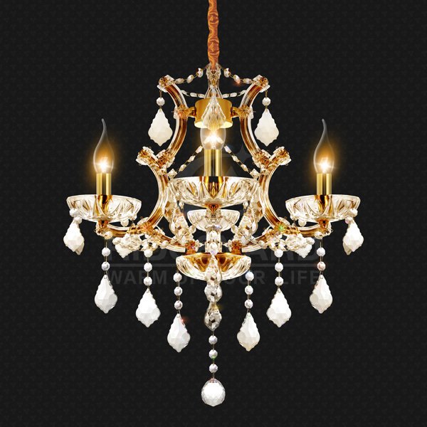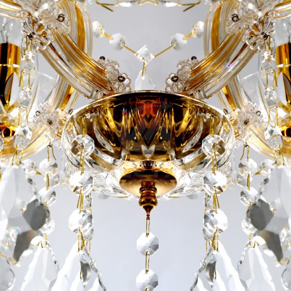 This crystal chandelier uses a large number of layers of 100% real K9 crystals to capture light. Cascading crystals reflect light beams in such a way that they appear to have multiple sources of light. The unique design makes it a conversation piece suitable for any room. This elegant chandelier has a light gold finish. Dress up your entryway, dining room and even bathroom with this elegant light fixture. The crystal deflects light, creating a multi-directional glow. Modern and traditional elements allow the lamp to blend in with a variety of styles.