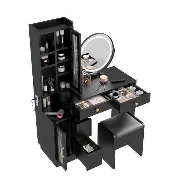 4. Retractable Design and Customizable Layout: The dressing table can be extended or retracted to accommodate your space and needs. The side cabinet can be positioned on either side of the vanity, allowing you to create a layout that best suits your space and personal preference.