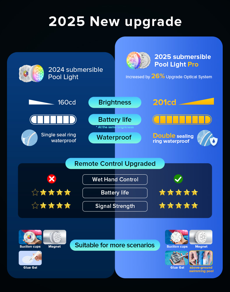 SANSI IP68 Waterproof RGB Pool Light, Summer Rechargeable 20Hrs Outdoor LED Lamp For Swimming Pool,Pond,Shower,Bath