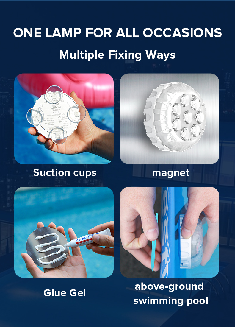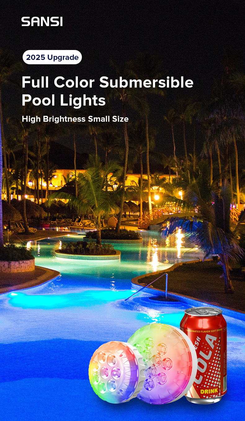 Home > SANSI IP68 Waterproof RGB Pool Light, Summer Rechargeable 20Hrs Outdoor LED Lamp For Swimming Pool,Pond,Shower,Bath