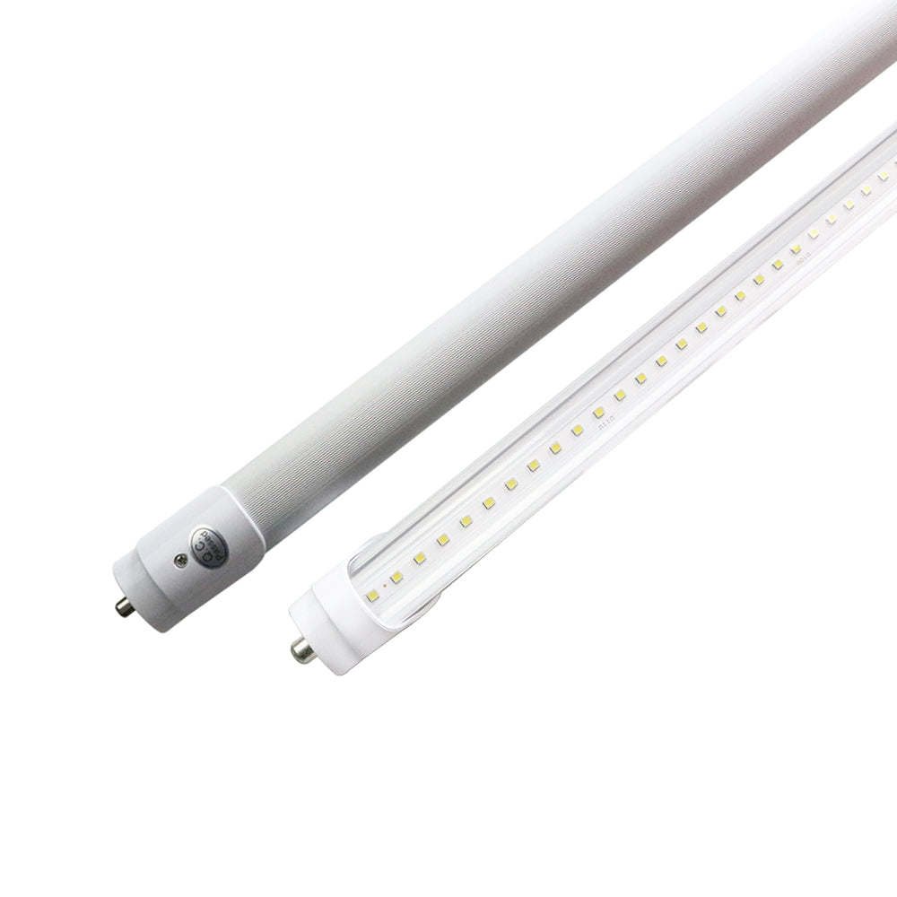 Our new ZELL T8 8 FT Tube offers significant energy efficiency and lifetime improvements over fluorescent lamps. Zell is made of full Aluminum housing with PC Cover lens which makes Zell the most durable 8 FT tube of its kind. Our ZELL lamps are installed by bypassing existing fluorescent ballasts and hard-wiring tombstone lamp-holders directly to incoming AC power leads. Dual-ended bypass lamps eliminate the need to replace shunted tombstone lamp-holders in existing fluorescent luminaires.